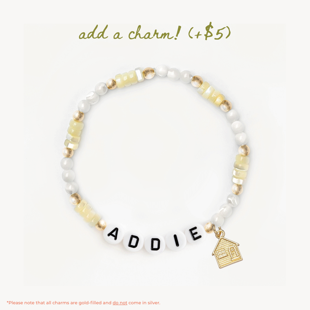 ♡ 10 characters max. Any space input will be represented by a heart or spacer bead depending on letter style.